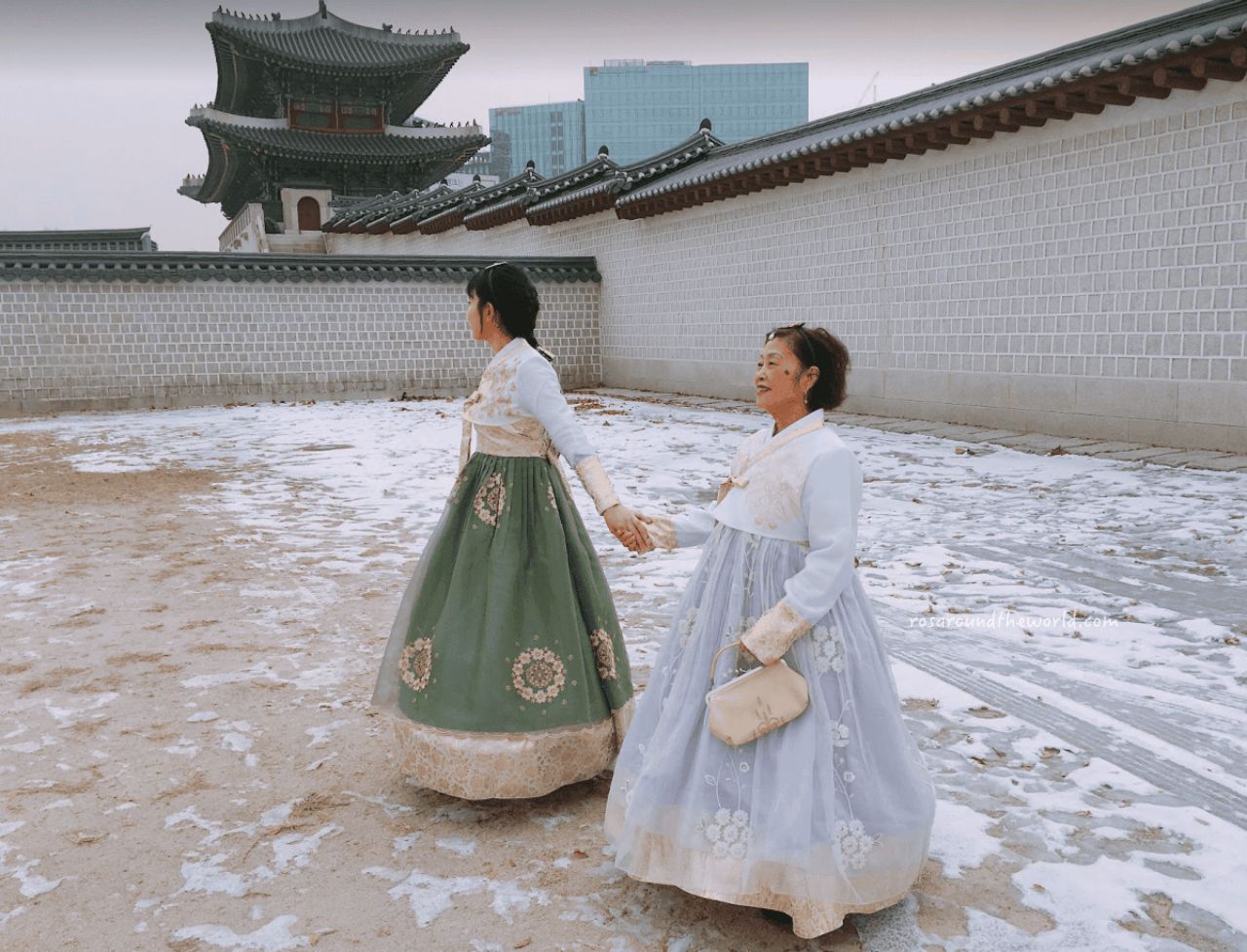穿過三次韓服我最建議春秋來的時候租,如果是要在夏天或冬天穿的話,考量到首爾很熱或很冷,時間不用租太長,真的穿不了太久!