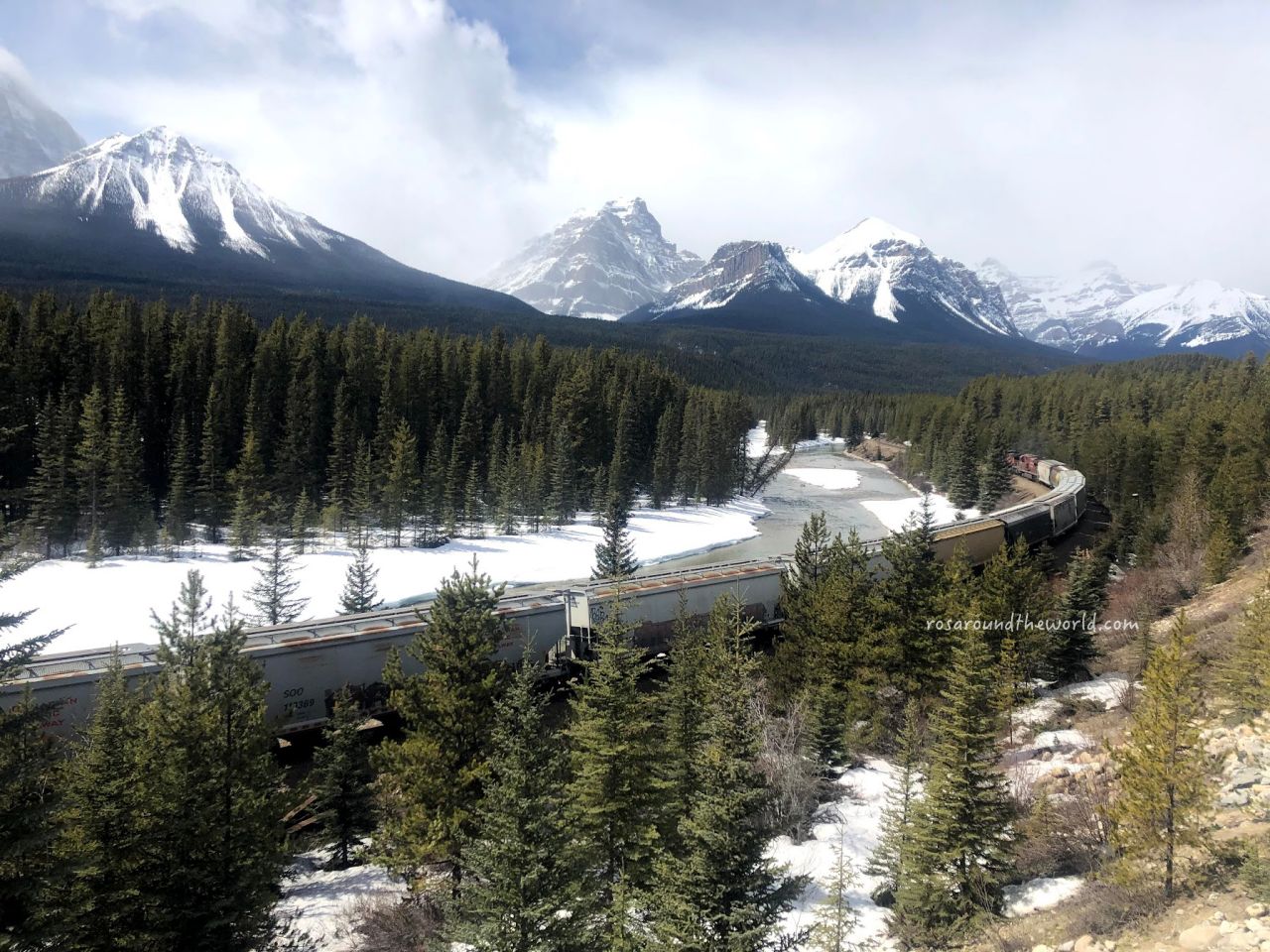 因為洛磯山脈冬天的時候會積雪非常厚,所以雪山也特別漂亮,而這裡就是不耗費力氣可以 360 度看美景的地方。