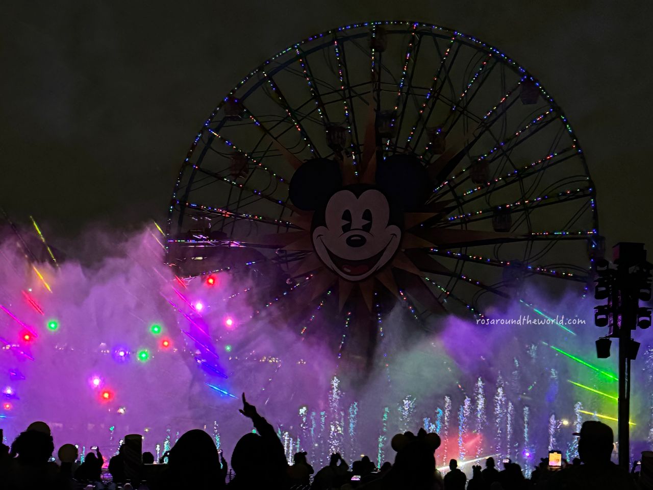 雖然沒有煙火表演,但擁有全世界唯一一座,在迪士尼裡的摩天輪,晚上在摩天輪還有燈光水舞秀,而且非常適合大人,有皮克斯主題、復仇者聯盟等園區。