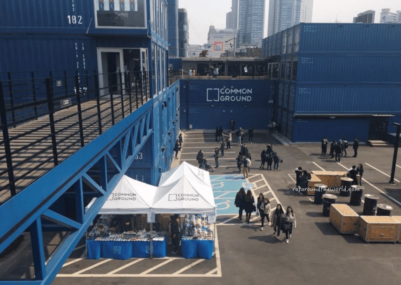 附近最有名的地標是由 200 個藍色貨櫃組成的 Common Ground (커먼그라운드),是世界上最大的貨櫃購物中心,裡面很多家文創小店跟各種咖啡廳。