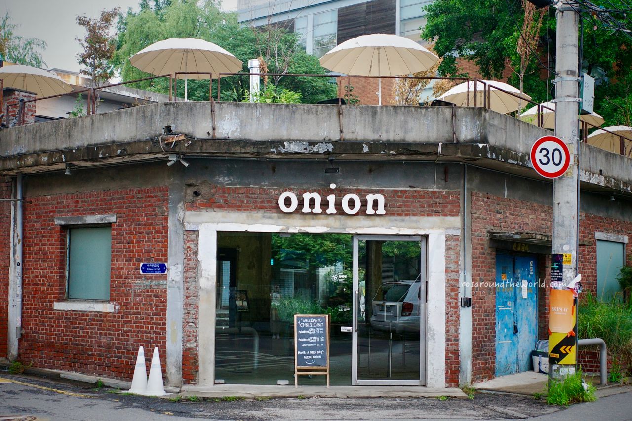 Cafe Onion 在首爾有非常多家分店,其中最紅的就是位在安國的韓屋風造型分店,不過那家實在要排太長了,聖水這家一樣超有特色。