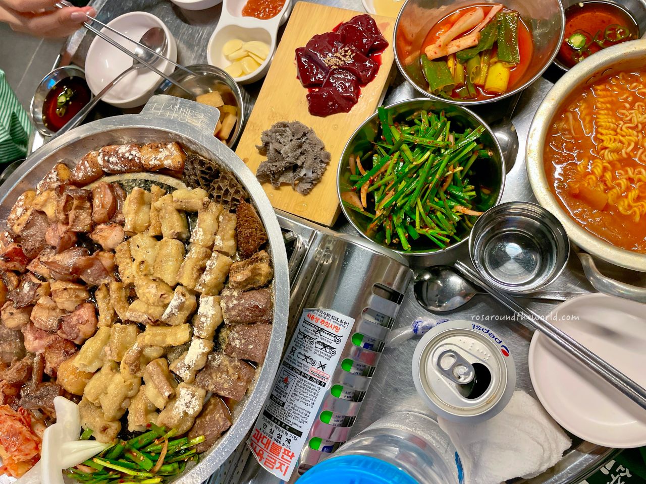 可以依照人數來點,牛腸跟牛血是直接沾醬生吃的,其他就是放到烤盤上烤。韓國的習俗,吃完後不要忘記再加一份炒飯!