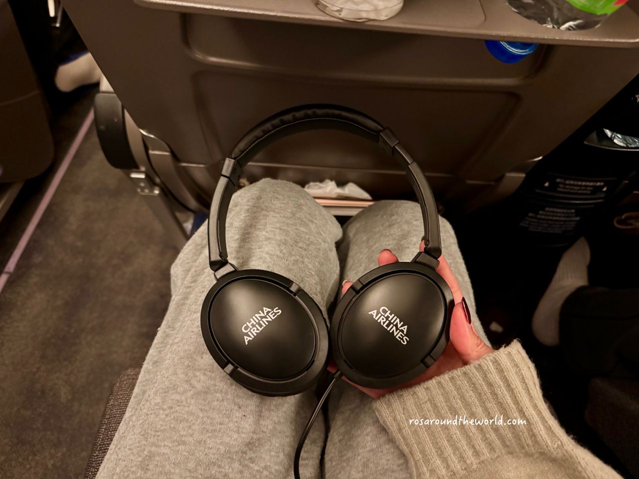 喜歡看電影的人有福了,豪經艙是使用耳罩式耳機,實際戴了真的蠻抗噪的,而且也很柔軟,戴著睡著也不會不舒服,這點比經濟艙好不少。