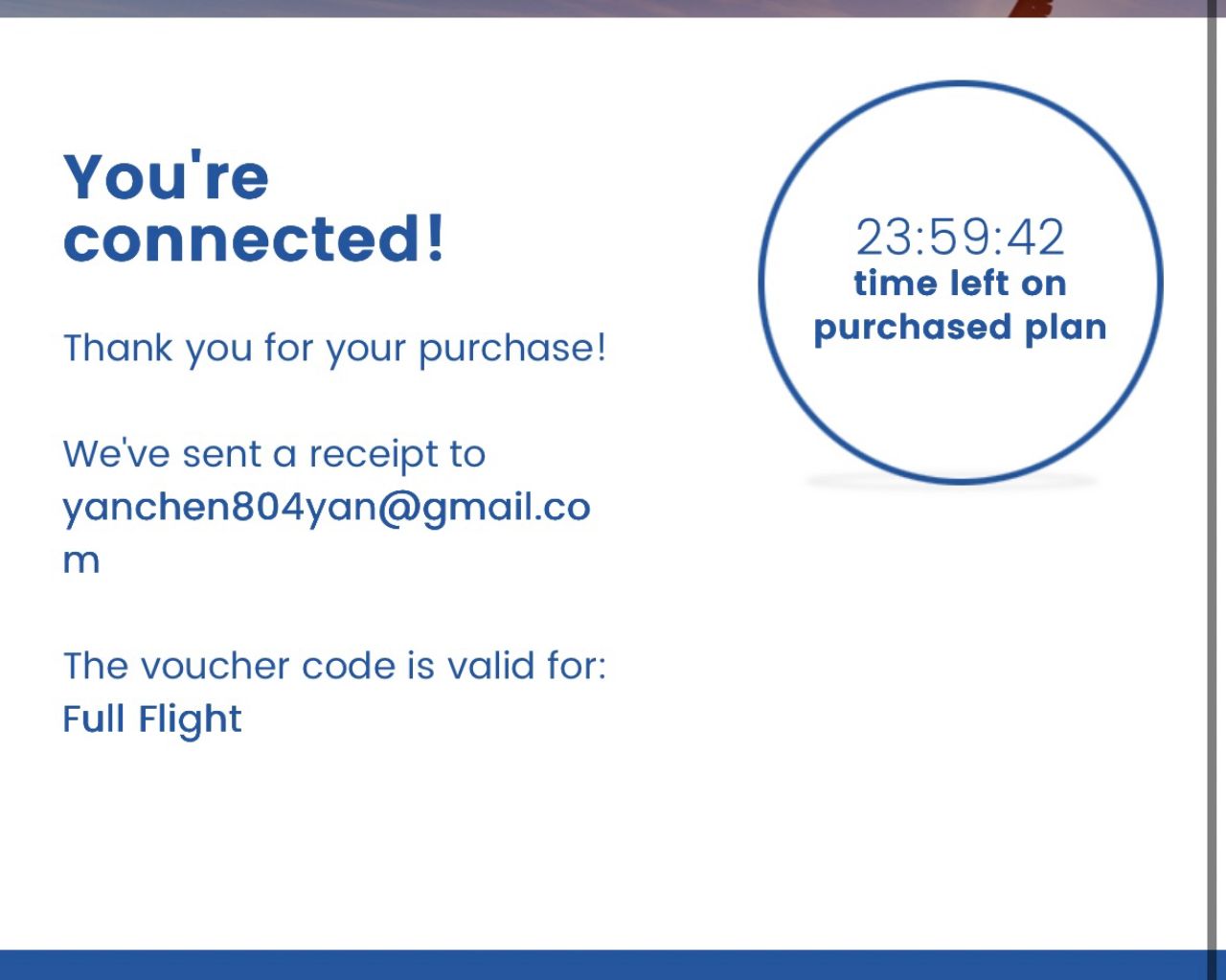 起飛前空服員就有送來迎賓果汁,另外全程有免費的機上 wifi,雖然不到非常流暢,但是滑社群、Line 傳照片沒有問題,都可以正常使用。